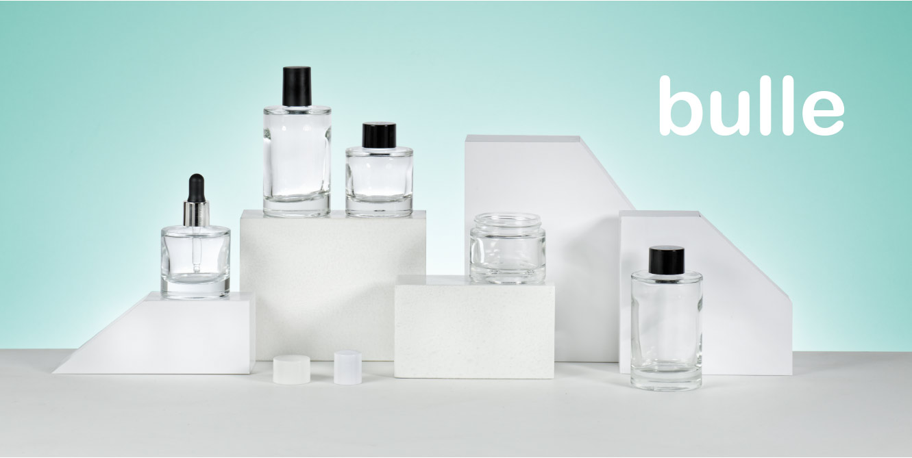 You are looking for a line of all rounded cosmetic packaging? Choose our bottles and our glass jar from the BULLE Collection. It will be a must in cosmetic shelves. Lacquered, transparent, matted… it is your choice!